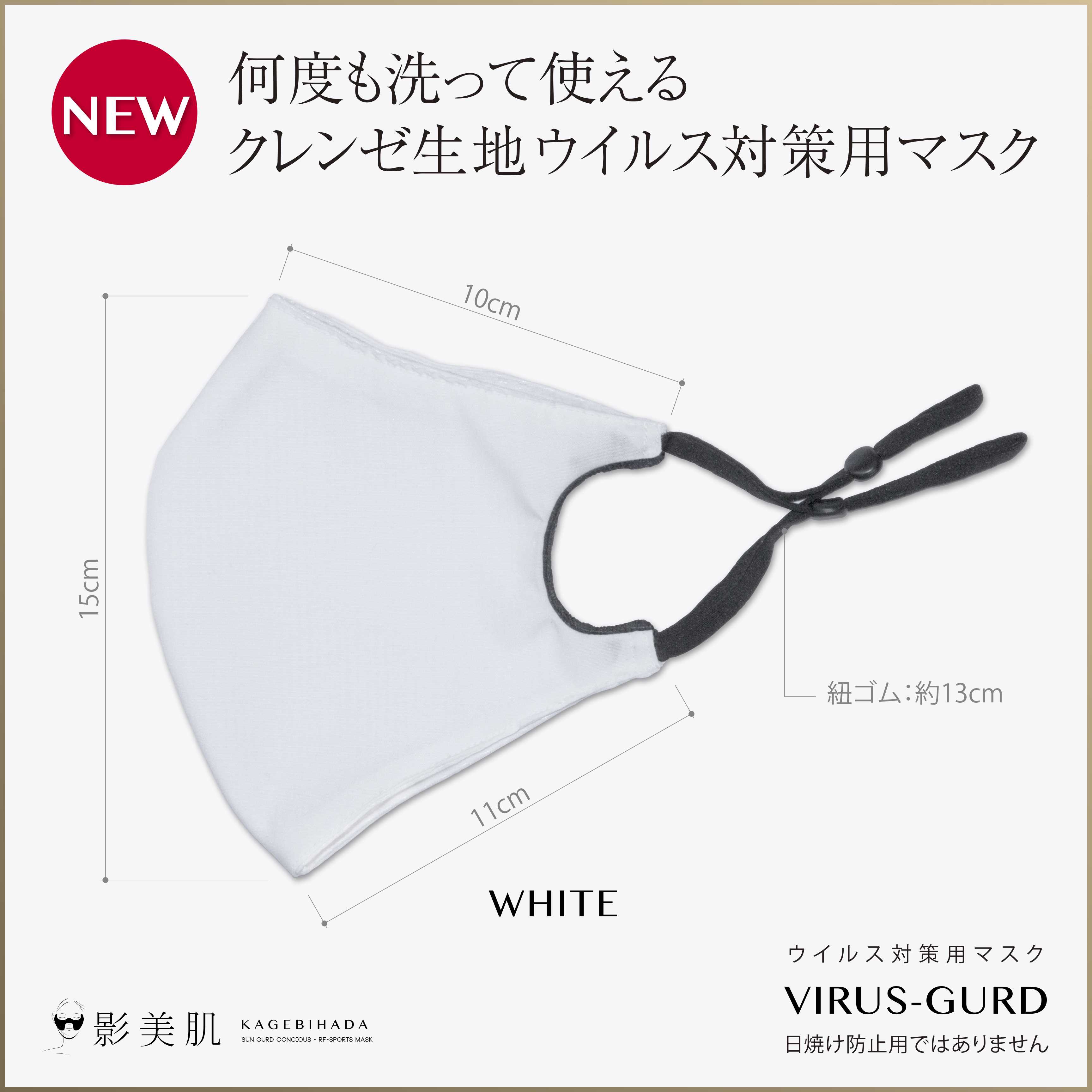 ウイルスガード:ホワイト(大人用・男女兼用)日本製 リバーシブル 硬めの生地/クレンゼ(抗菌・抗ウイルス加工) 柔らかめの生地/ベンワールド(UVカット生地) 装着は、上下、裏表 使用者の自由です。 しっくり付け心地のいいようにご使用してください。 2020/9/23、日本経済新聞にてクラボウはクレンゼ加工を行った繊維素材では新型コロナウイルスに対するウイルス減少率99%以上減少と検証したと発表 その他、インフルエンザウイルス・ノロウイルス・アデノウイルス・など19種類のウイルス細菌を不活性化させる働きがあることが実証されています。 抗菌・抗ウイルス機能繊維加工技術クレンゼは、固定化抗菌成分イータックを活用し、繊維表面に強力に固定化するクラボウの加工技術です。 優れた洗濯耐久性 家庭洗濯50回後も繊維上の特定のウイルスの数を99%以上減少させる 安全性 口腔衛生用抗菌剤をベースにしている為、高い安全性を確認。 注意;マスクはウイルスの侵入を完全に遮断することはできません。