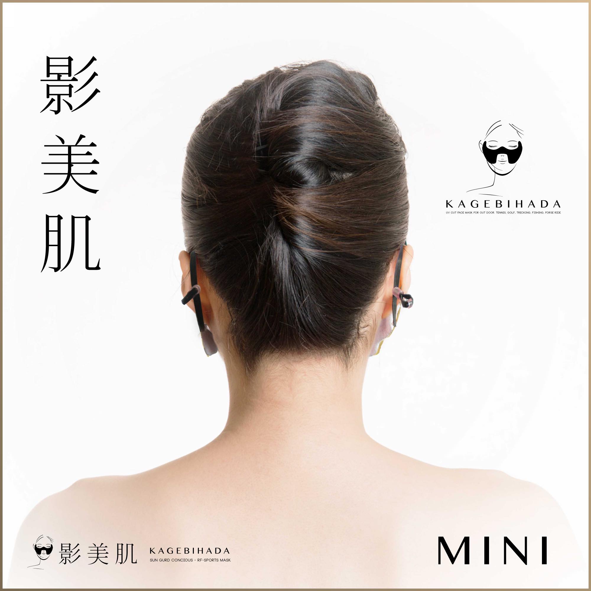形状が従来のマスクに近く場所を選ばずに使えるミニタイプは、目尻部分と顎の長さが少し短くなっておりガードする範囲は少なくなりますが、その分手軽で快適にお使い頂けます。裏地にはパイル時を使用しており、汗をしっかり吸収。耳ゴムのみで装着し、サンバイザーや日焼け止めなどと併用すると更に高い効果を得ることが出来ます。