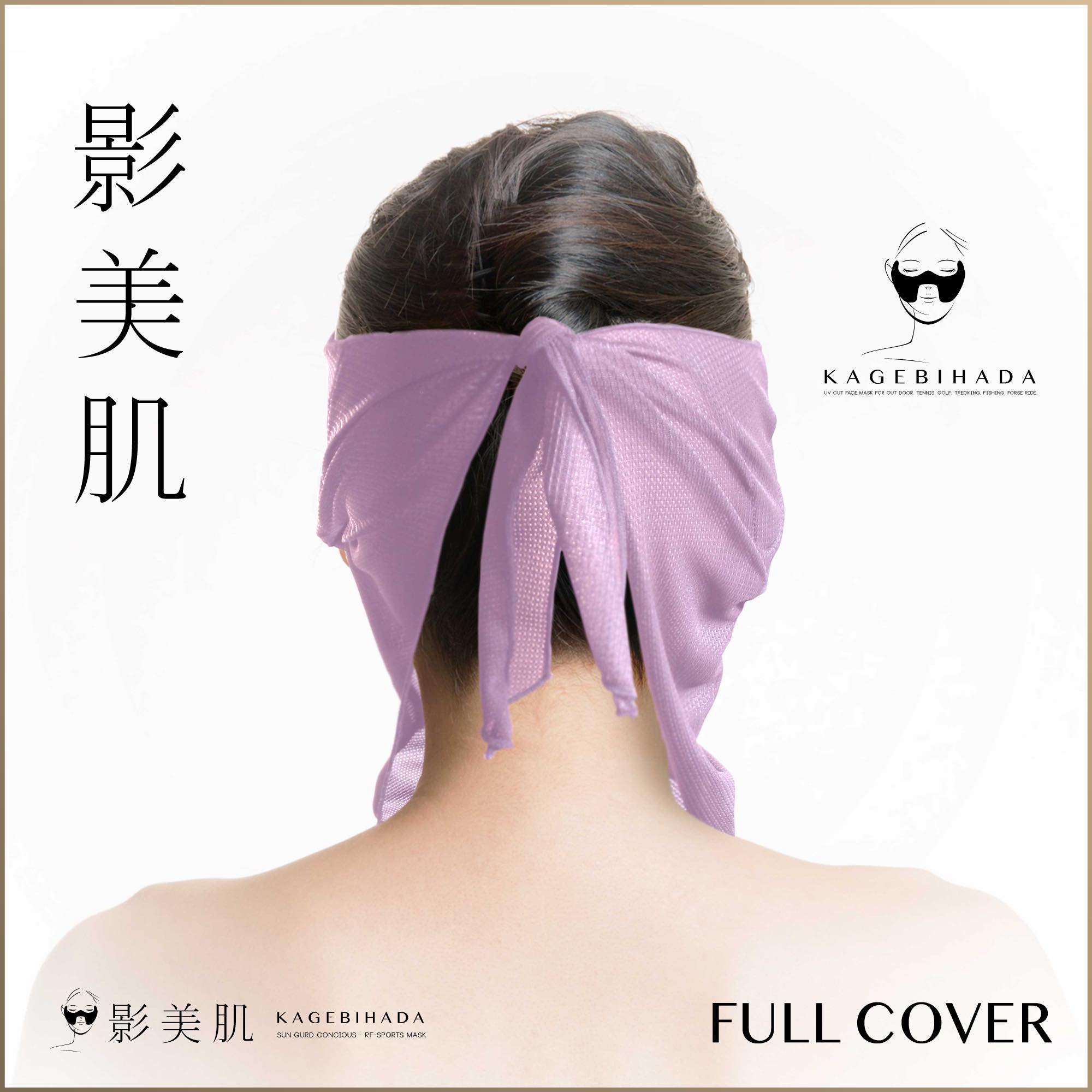フルカバータイプは、耳、デコルテ、首の広範囲をガードできるタイプです。とにかく焼きたくない方にはお勧めのモデルです。耳ゴムに付け加えて、頭の後ろで縛って固定するタイプなので、ポニーテイルのように、髪を後ろに束ねる方にオススメです。これだけガードしても、呼吸のしやすさはまったく変わりません。水分補給も、スカーフとマスクの間から簡単に行うことが出来ます。サンバイザーや日焼け止めなどと併用すると更に高い日焼け防止効果を得ることが出来ます。(耳ゴムの長さ調節機能付き)