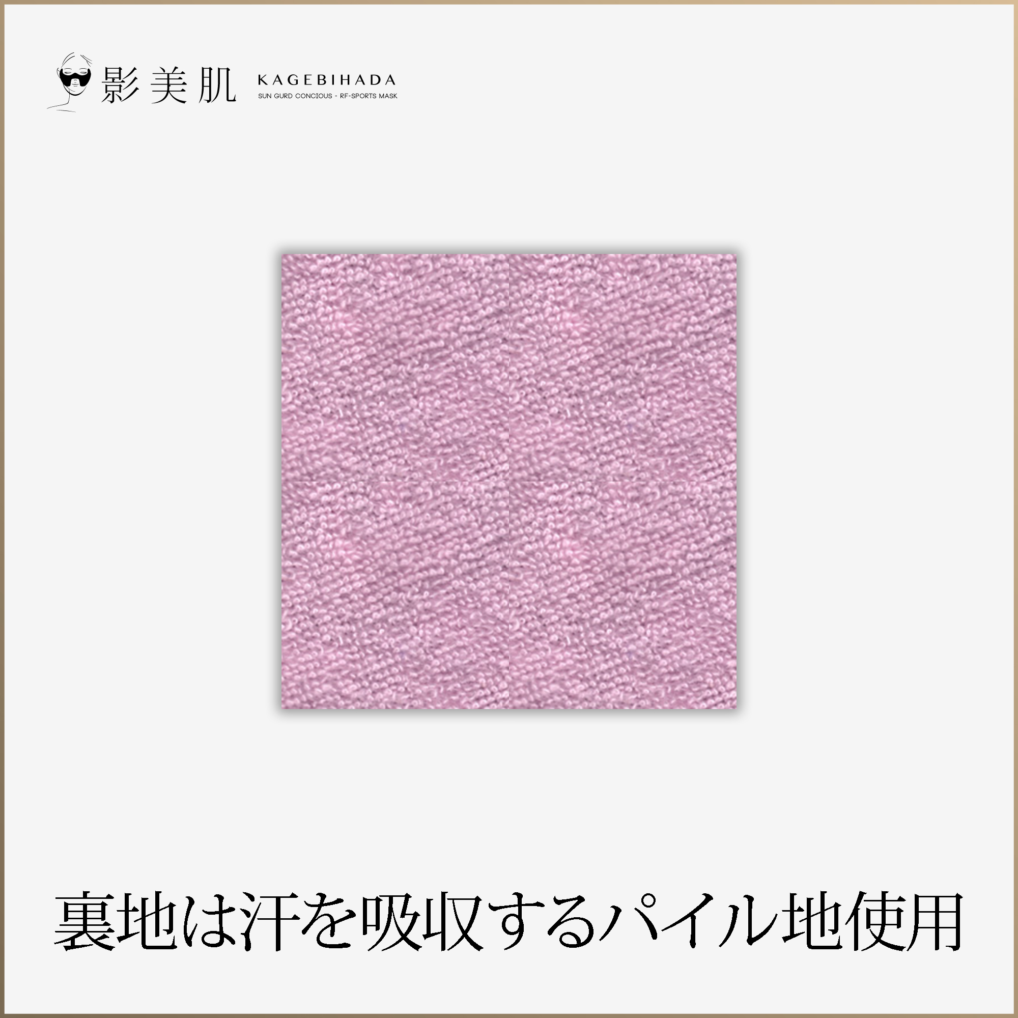 レギューラータイプは目尻をしっかりガードでき、簡単に装着できる一番定番のモデルです。快適性と守備範囲のバランスを意識しており、息のしやすさはもちろん、裏地にはパイル時を使用し、汗をしっかり吸収してくれます。耳ゴムのみで装着し、サンバイザーや日焼け止めなどと併用すると更に高い効果を得ることが出来ます。