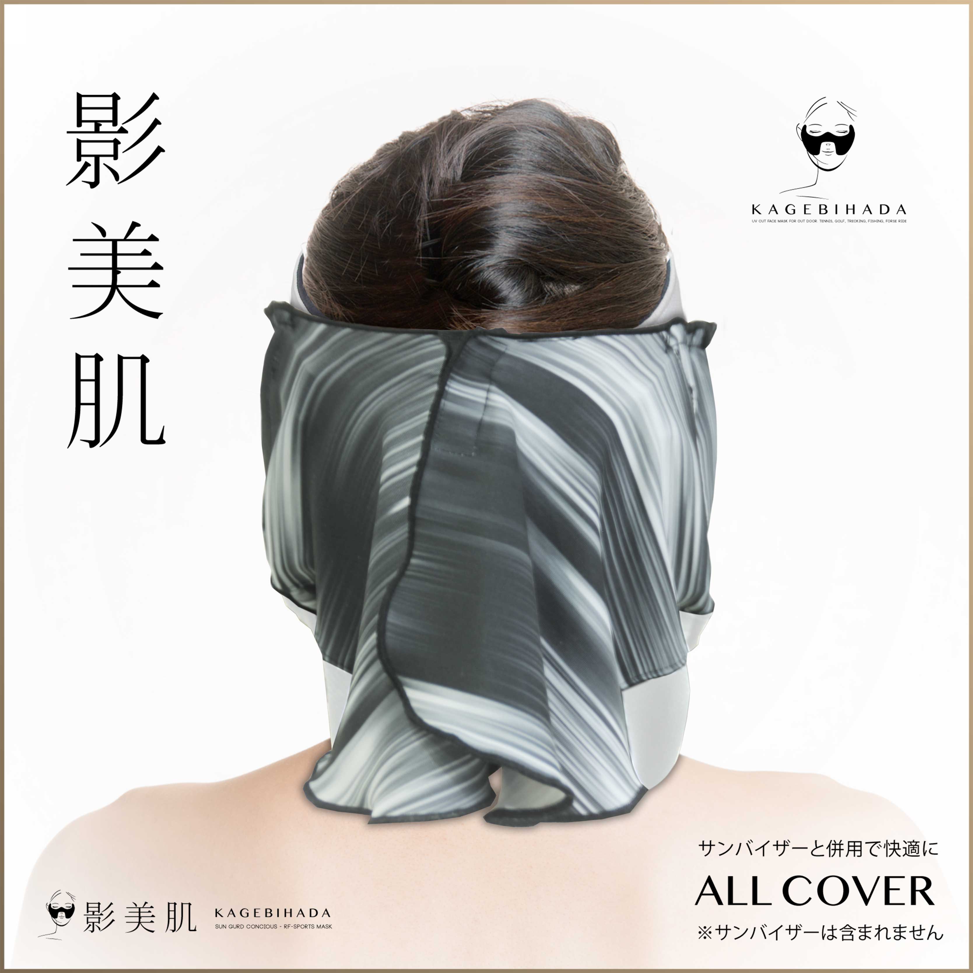 耳、デコルテ、首、さらに、首の後ろも。影美肌の中でも最も広範囲を保護できるオールカバータイプ。背面はサンバイザーやキャップに固定することが出来るようになっており、沢山動いても下がってきません。 無地といくつか柄のバリエーションが選べます。