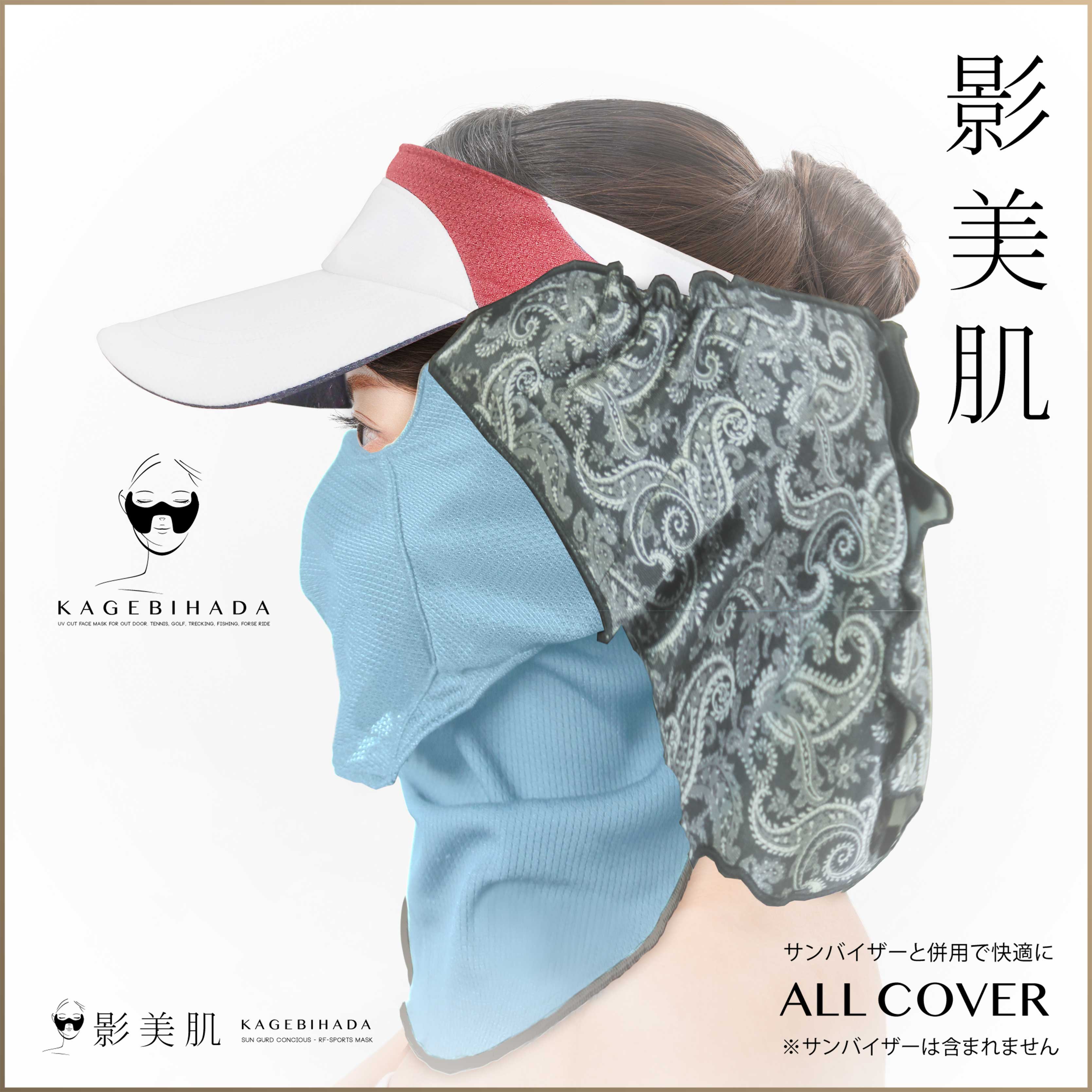 耳、デコルテ、首、さらに、首の後ろも。影美肌の中でも最も広範囲を保護できるオールカバータイプ。背面はサンバイザーやキャップに固定することが出来るようになっており、沢山動いても下がってきません。 無地といくつか柄のバリエーションが選べます。