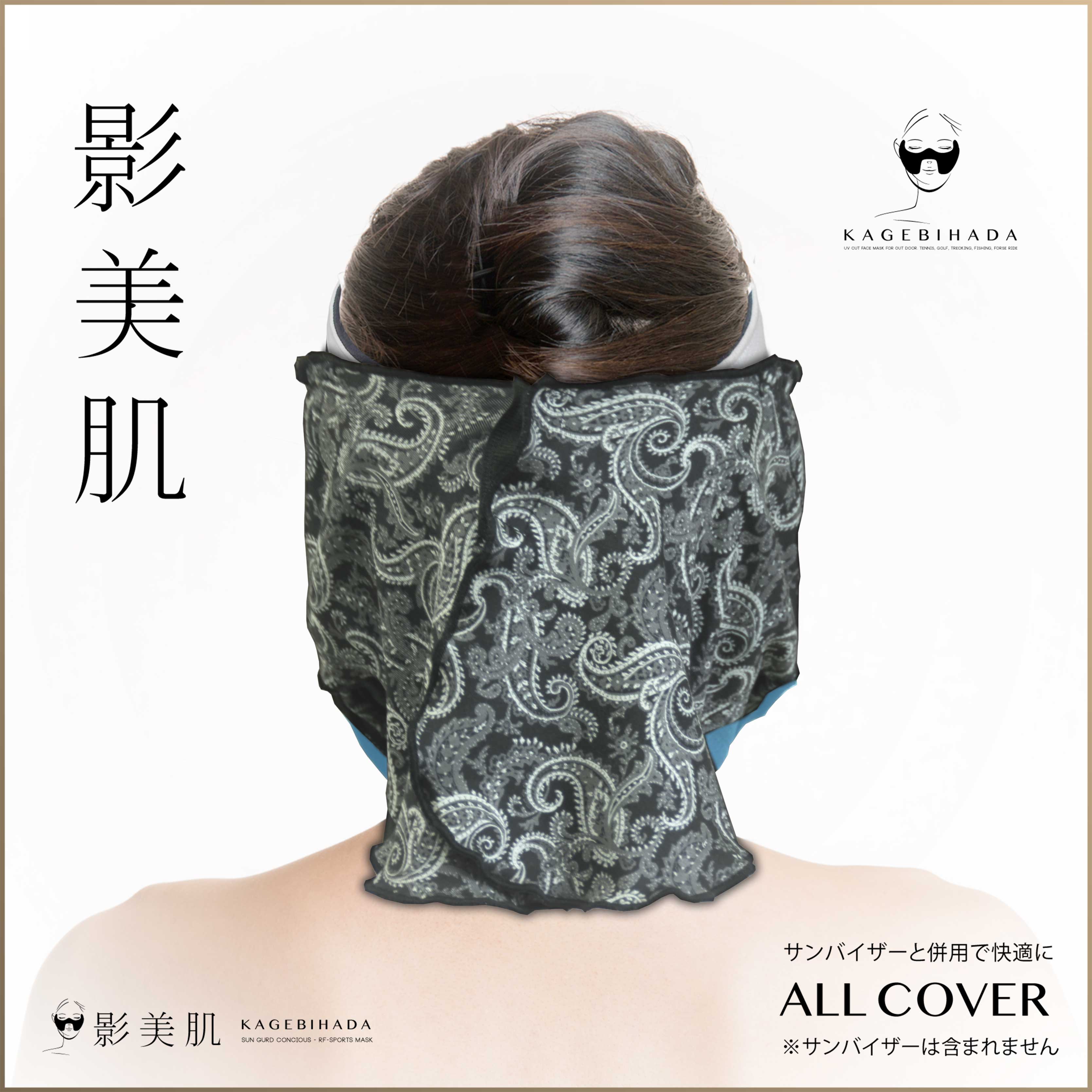 オールカバータイプは、耳、デコルテ、首から首の後までと、シリーズの中で最も広範囲をカバーできるモデルです。耳ゴムに付け加えて、頭の後ろのボタンで固定します。また、後ろの部分はサンバイザーに引っ掛けれるようになっており、ずれ落ちるのを防止します。これだけガードしても、呼吸のしやすさはまったく変わりません。水分補給も、スカーフとマスクの間から簡単に行うことが出来ます。サンバイザーや日焼け止めなどと併用すると更に高い日焼け防止効果を得ることが出来ます。(耳ゴムの長さ調節機能付き)